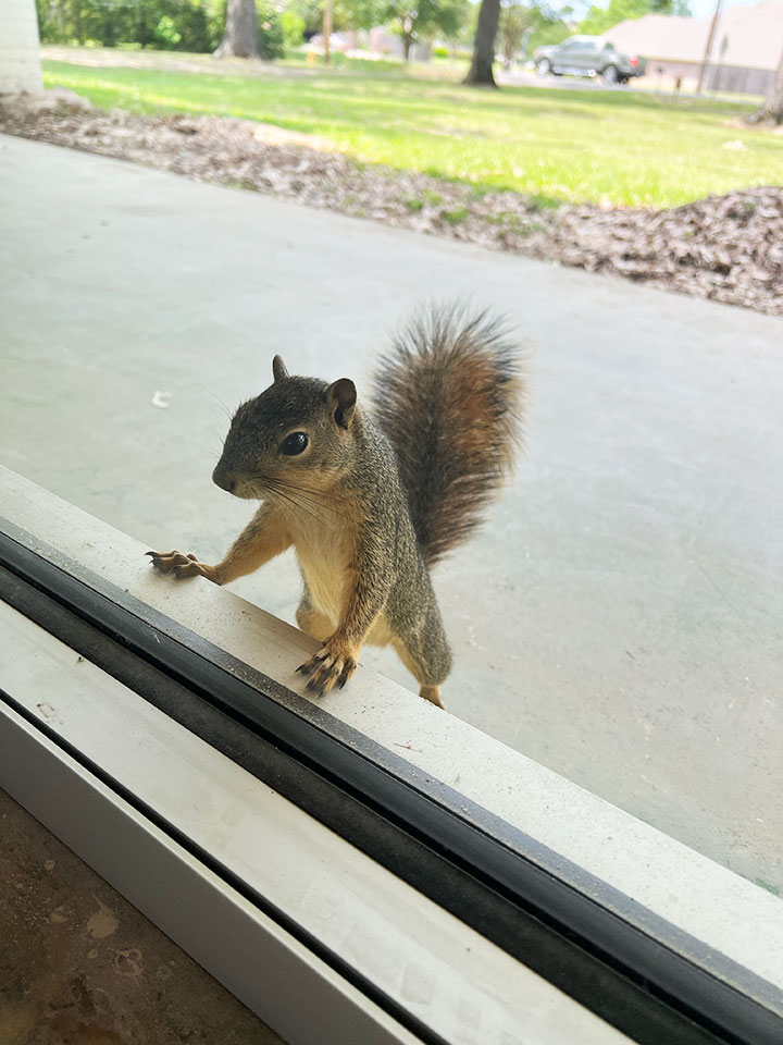 I think the highlights of this page would have to be the caterpillar cocoon on the window and the squirrel saying hello.