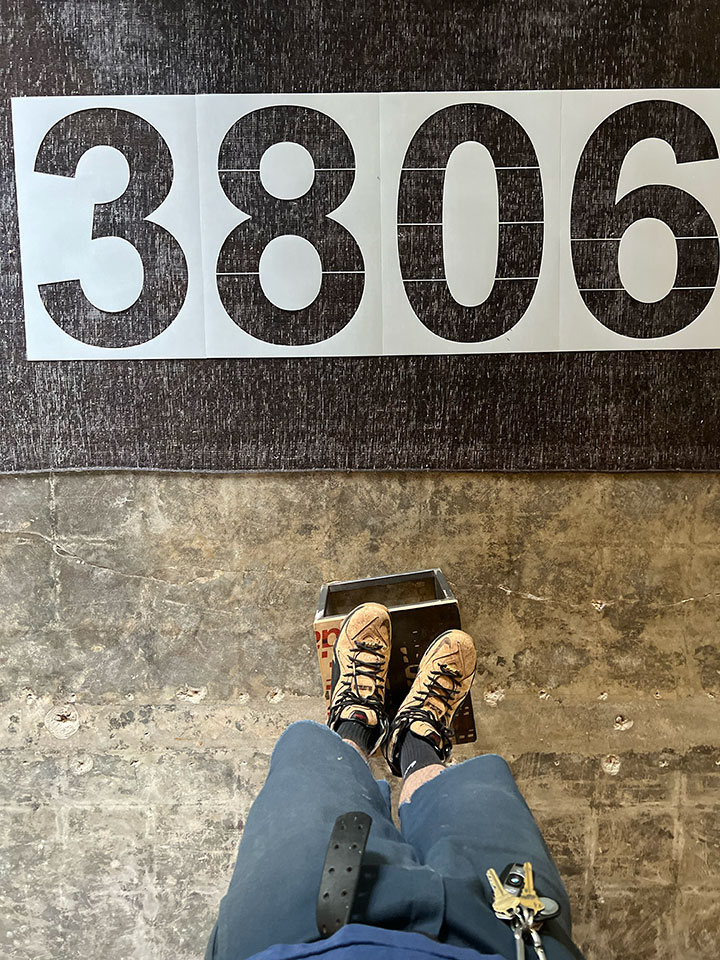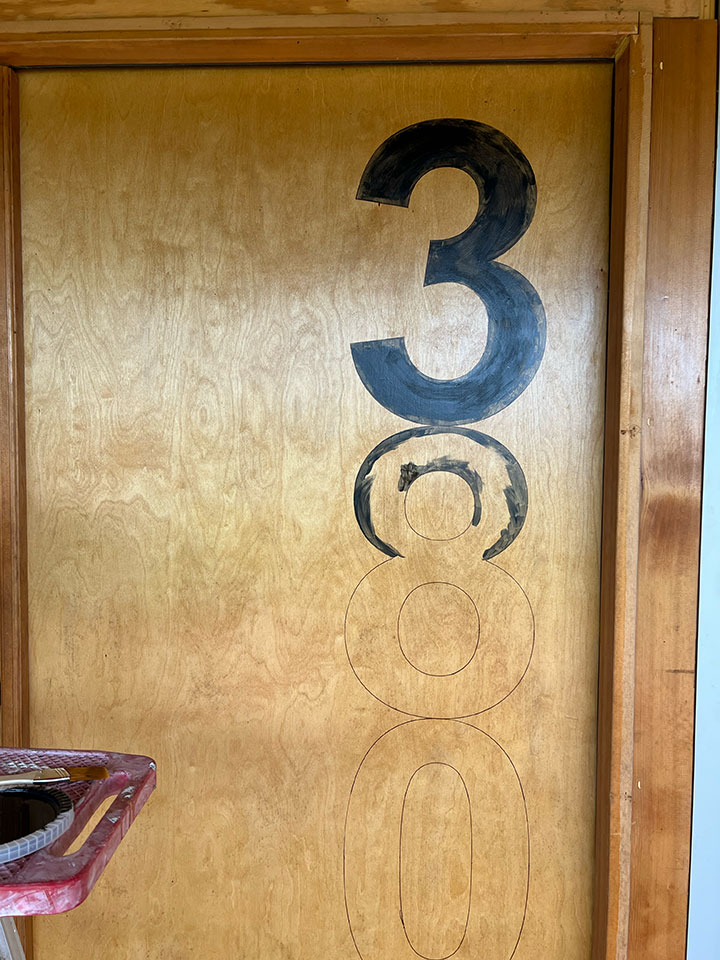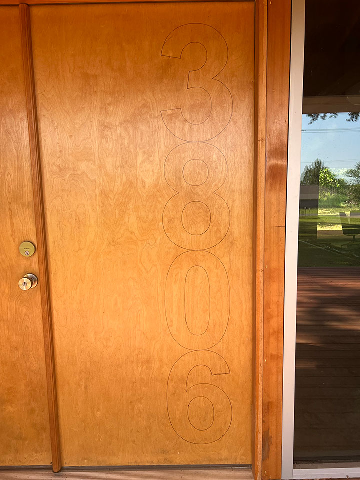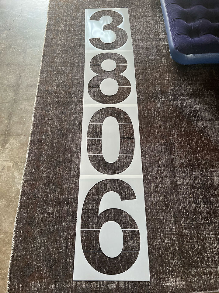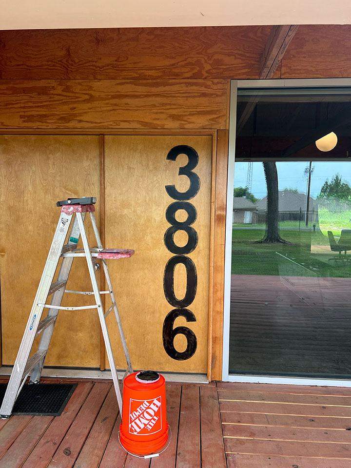 Scraping, scraping, scraping. And then some more scraping. It's really fun actually. It's like creating an artwork. Stencils arrived for the front door numbers too.
